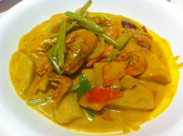 咖喱泰国甜虾,这里也有泰式菜呢,这个咖喱味挺正宗的,里面的土豆很好吃,甜虾很新鲜,可惜后来没叫碗饭,这个咖喱拌饭也很好吃呀