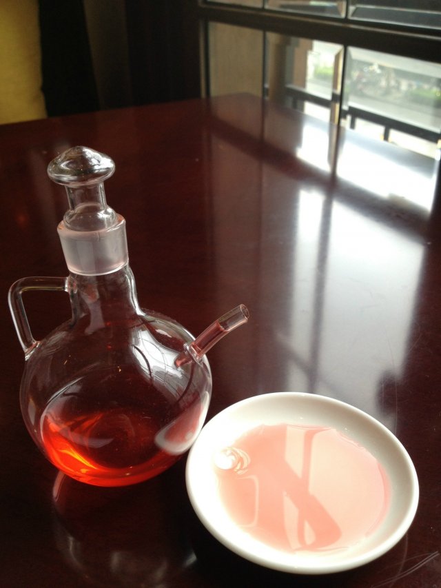 我坐在靠窗的位置,不管是天花板吊灯还是桌子上那如艺术品的酱油和醋的容器,都体现出那种高贵呀。