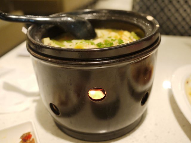 【鸡汁御唐叶】38rmb。这个很赞,也是在他家的推荐菜里。里面有几块鸡肉,豆皮、蛋皮和香芹杆儿,还有一只虾。味道清淡,但是回味比较足。