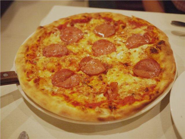 【意大利腊肠pizza】12寸的,原价也只要50,他家本身价位就不贵,团购了更显便宜!腊肠虽然不是很多,但是能保证每片pizza上都有肉,足矣~味道也好,尤其是pizza边有点烤的硬硬的,嘎嘣脆呐