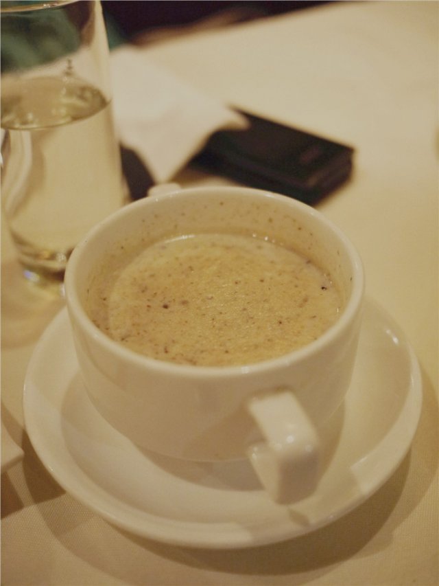 【奶油蘑菇汤】他家的奶油蘑菇汤我是越来越喜欢,喝到嘴里蘑菇的味道很重,刚开始可能不太习惯,像我比较喜欢蘑菇,除了不爱吃香菇其他都很喜欢,所以这股浓浓的蘑菇味我反而很喜欢,而且喝到嘴里还有颗粒感,很是不错~