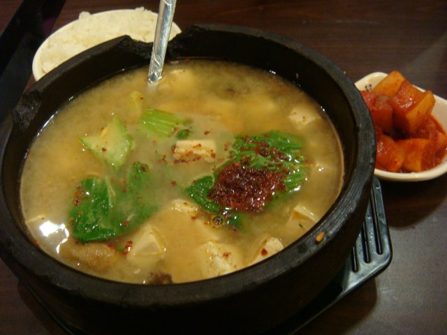 一般都是顺路随便决绝顿饭,快捷简便。拌饭还是比较靠谱的选择,最少热热的运气好的话可以碰到有饭焦,各种蔬菜加上一个煎蛋,拌上韩式甜辣酱,随着吱吱的热气一起搅拌大口口吃,营养结构比较全面吧,味道也不错。