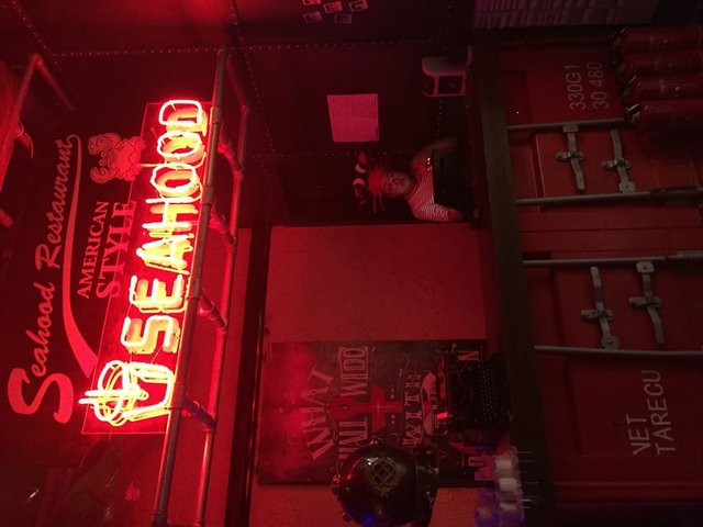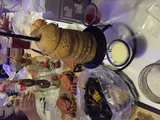 水货装修果然不同,一副美国街头的风格,每个服务员都带着螃蟹的帽子,每到gentleman的歌声响起,所有服务生都放下手上的工作开始舞起来,从内到外真是太欢乐了~