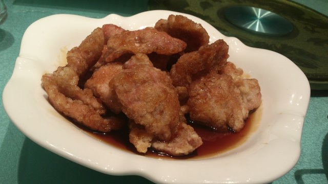 不多一会大家基本也都到齐了,开始点菜,说实话这菜牌我翻了两三遍,竟然一个都没点出来,后来想起来大众上大家推荐的锅包肉,就点的那个,哎呀,太失望了,怎么还那么多人说好吃呢,甜不甜,咸不咸的,勉强把那块吃掉,就再也不想吃第二块了,这老式的味道和哈尔滨的也差太多了吧,还不如老妈做的好吃,感觉炸的也不到位,是不是今换厨子了?还是晚上吃饭的人太多?做的着急了,不过上菜蛮快的