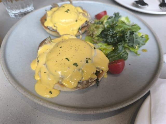 63C温泉蛋黑松露磨菇 ~ 面層的温泉蛋中間加上一片片的菇菌, 黑松露味比較淡😅反而更顯温泉蛋液的雞蛋味,底層的麵包都香脆. 不過,如果麵包熱一點會更好食.