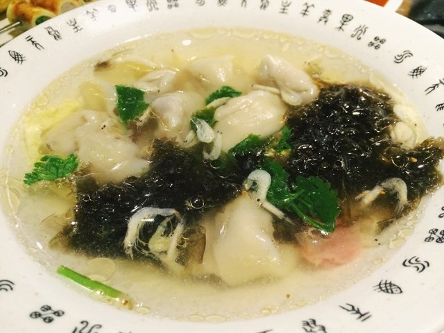 高汤云吞,6米。小盆友长了个云吞胃口啊,到哪都得点这个。鸡蛋、紫菜、虾米、火腿配小馄饨,皮子稍厚了些,馅儿比较小,价格还算实惠。适合吃个夜宵神马的。
