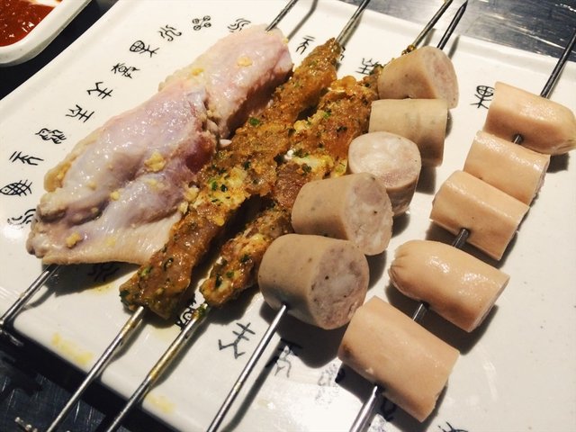 点餐上餐倒是很快,不过炭火来的比2002年要晚一些,肉串都上齐了还没给火。