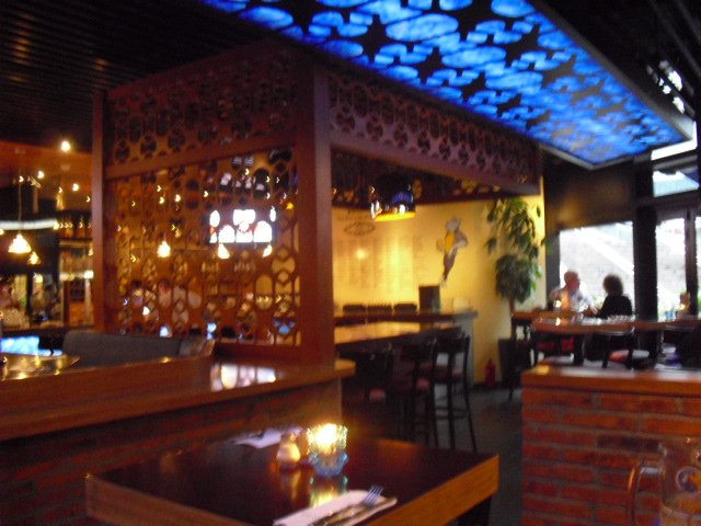 它家的环境布局象酒吧一样,暗暗的,蛮有特色,总得来说没来过,总要尝鲜一次吧,呵呵。