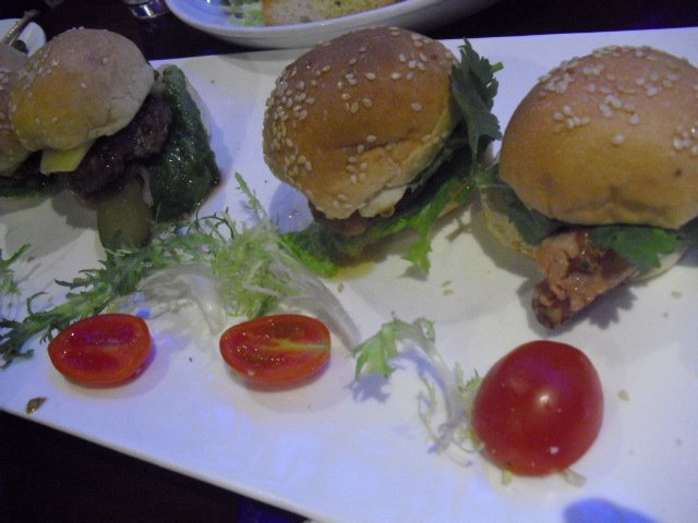 《迷你汉堡》85元/四只 :要了二种口味的,牛肉和鸡肉的,牛肉的鲜嫩多汁,入口鲜香无比,赞的,鸡肉很入味,面包是烤过的,别有风味;
