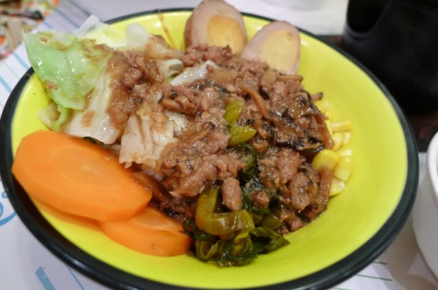 @台式香菇肉燥饭/18块,这个肉燥饭味道不错,我们两个瓜分的很快啊,还算比较实惠吧,还会附赠一份汤,感觉跟云吞的汤味道蛮像的