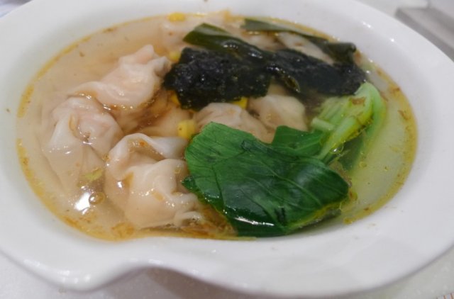 @鲜虾云吞/19块,云吞味道不错~虽然量不是很大,不过吃吃倒也还好。我们要的是海鲜清汤,吃完云吞后又喝了点汤,还蛮好喝的
