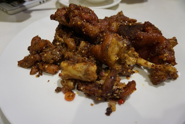[蜀香猪手]58元 基本一盆是5/6块猪手。没有外面的qq烤猪蹄好吃。切得很小块。猪皮很q弹但是口感太辣太麻了。