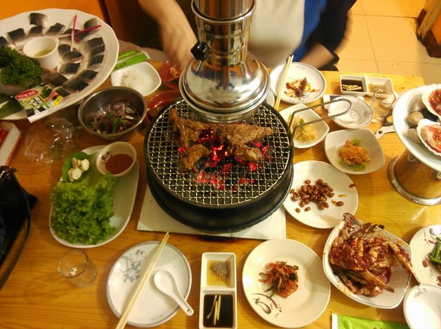 他家特色是烤鳗鱼这个是每桌必点的,其他的菜品有各种海鲜类的,如海螺,大扇贝,还有各种朝鲜拌饭,冷面,和烤肉类。他家小菜特别多,还没上点的基本桌子就快满了。而且小菜的味道非常好。