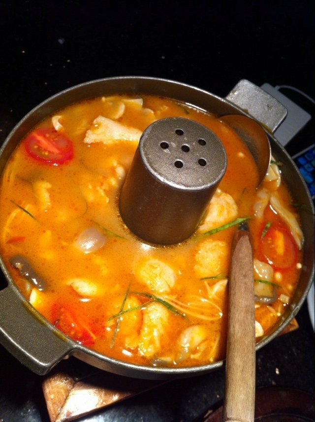冬阴功鱼片;冬阴功的汤汁还是蛮酸的,但是不够辣,鱼片鲜嫩可口,但是不入味,肉质还是很新鲜的。