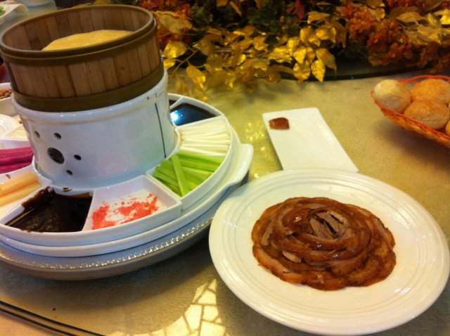 来金百万,不得不吃金百万的烤鸭,以烤鸭著称的金百万曾经以25元团购烤鸭横扫京城。今天尝试的108元的新派烤鸭,关于新派烤鸭和精品烤鸭的区别,我的理解是,鸭子可能本身有不同,另外,烤制的过程可能有所不同,依此区分新派和精品,精品较新派是要贵一些的。金百万的烤鸭,片的时候,皮单片一盘,一般是8块胸脯下面部分的皮,非常香,蘸跳跳糖食用,入口充满香油,但是并不是很腻,吃上2块问题不大。