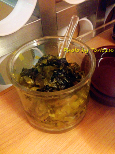 虽然主食已经吃得很饱了,可还是点了几道小食来“助助兴”。看到这里有台式的泡菜,处于好奇心点了一份~和韩国泡菜在卖相上有着极大的差异,没有鲜红的辣椒色,新鲜嫩黄的白菜上还加了些许胡萝卜,味道是酸中带甜,还挺开胃的!