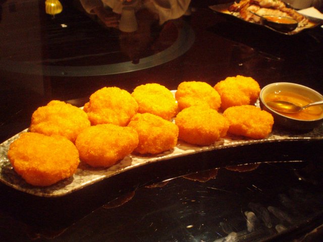 很推荐吃的金钱虾饼外酥里嫩的,那里的经理说这个是没有加任何东西的哦,都是鲜虾肉搅拌成泥外面裹上面包糠炸的,真的好好吃