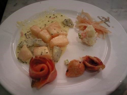 烤鳗鱼,这个盘子也永远都是空的,因为供不应求,我刚问,这个还能放点吗,厨师放了,然后马上就被旁边两个手持大夹子的人给夹走了,放多少夹多少。于是我不问了,等别人走了,我再问,这才拿到了两块。味道有点甜,而且凉了,有点腻了~~~