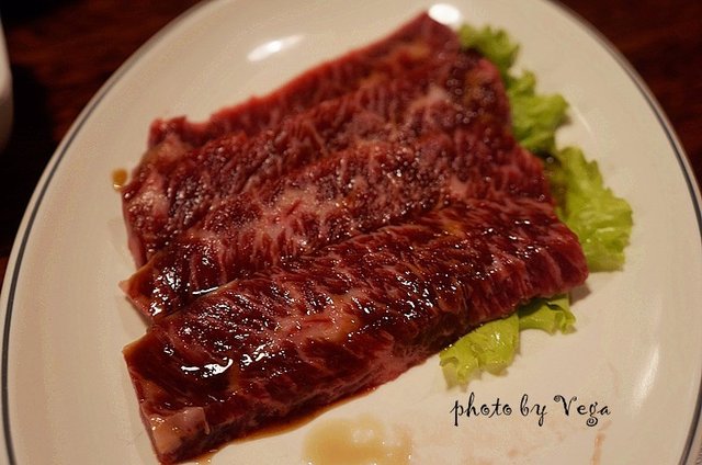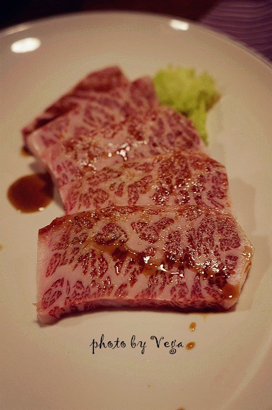 特上牛小排318米:也就是4,5片的样子,而且面积上来说一片也好小哦。。雪花还是挺美滴~真正入口即化的牛肉。。。木有咀嚼,就已经融化在嘴里了。。脂肪含量高的缘故吧~好神奇,第一次吃到这样的烤牛肉~