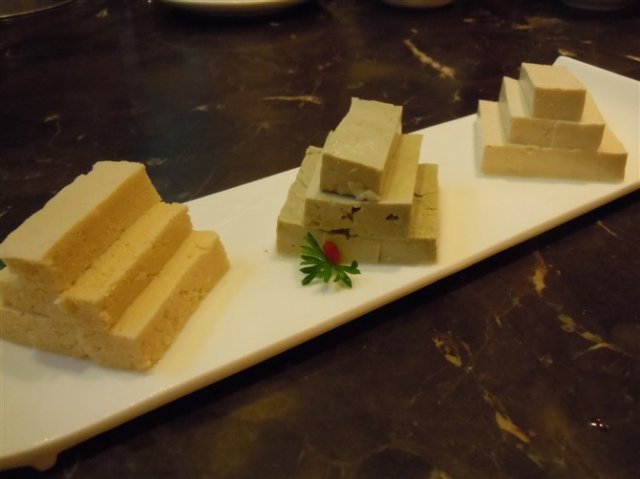 5。豆腐三色拼(约400g,价值12元) ;有冻豆腐,白豆腐和绿豆豆腐,味道中规中矩,可以。