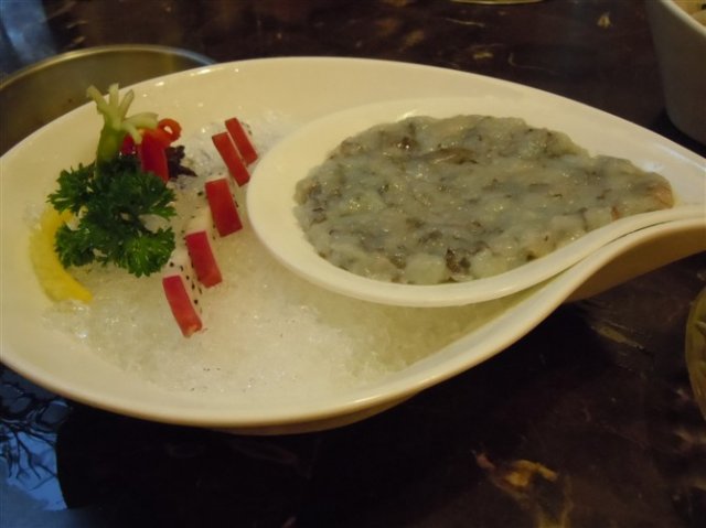 2.手打鲜虾滑(约150g,价值38元);选用深海大青虾,不加任何辅料,手工捶打而成,爽滑弹牙,口感俱佳。这道菜不错,虾仁很大,吃着也劲道,他家的滑类都不错,值得推荐。