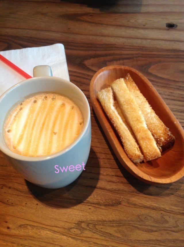 点咖啡都会附送烤的酥酥脆脆的吐司条,洒了白砂糖,甜甜酥酥的不错!