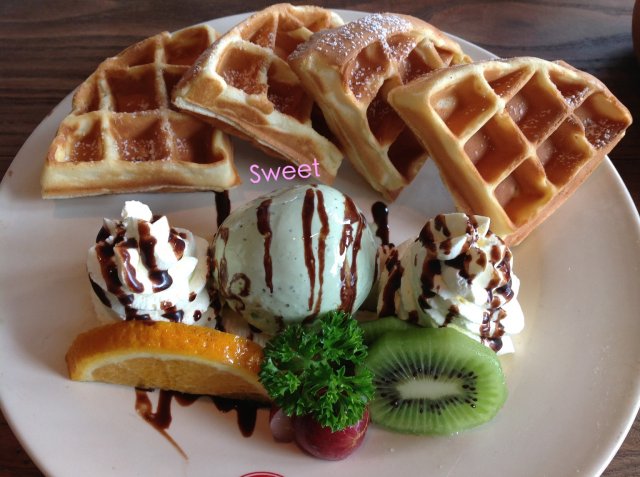 主角-----松饼,一份有四块,每块都很厚实!比一般的松饼厚两倍。