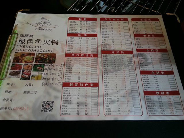 点餐的时候店员会给你一张菜单,直接填数字就可以,很方便。
