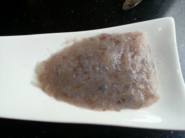 虾滑看着很新鲜,也挺有弹性的。煮熟后的虾滑颜色很漂亮,很劲道,可以吃到虾肉的颗粒,口感很Q,味道鲜美,很好吃。