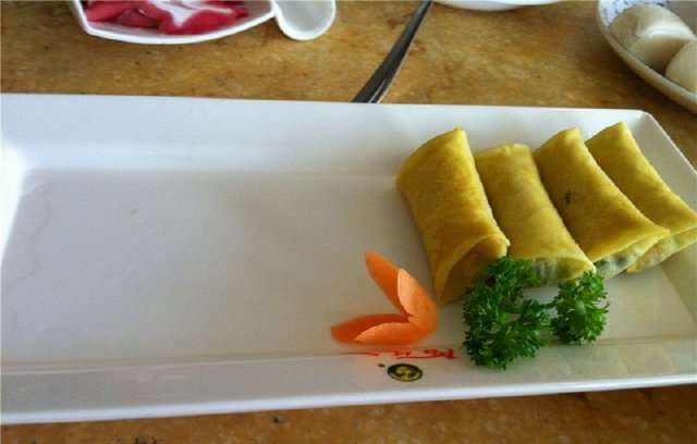 蔬菜:鸡鸭血10米,豆苗10米,基本上他家的蔬菜都是10元一盘的。