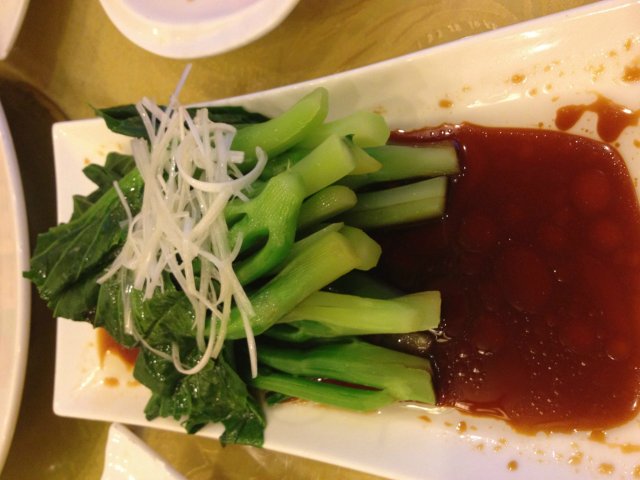 白灼芥兰26:这道菜超好吃,跟我在广州吃的味道差不多,芥兰很嫩,调的浇汁也很香。