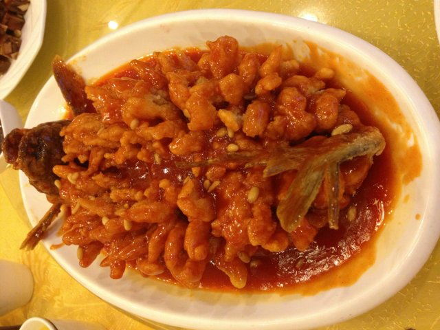 松鼠草鱼80:酱汁非常好吃酸甜适口,只是肉包的粉实在太多了,凉了以后,肉太结实了,都夹不起来。