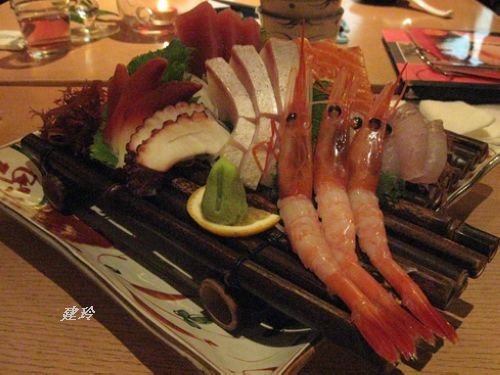 刺生拼盘: 鱼片切的很厚,很新鲜的。
