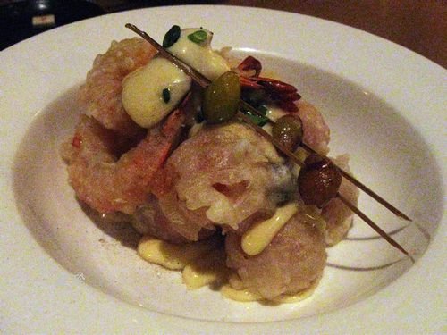 番茄炸虾:这个菜的味道真的很特别,番茄和虾都是象天妇罗那样炸过的,一块下去,居然没发现那是番茄哦,只觉得满口的汁水,回味一下才搞清,真的不错哦,番茄和虾偶都喜欢的,它家的虾又大个又新鲜,很弹性的。