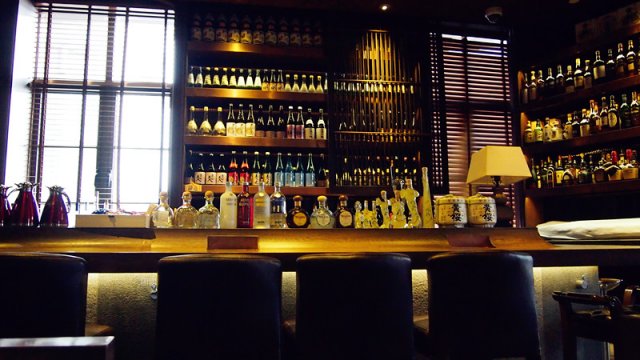 感觉这家的店长肯定是很爱餐具的,因为穿过回廊的时候满满的都是漂亮的茶碗酒碗,店内的布置也是花了不少心思,进店后有种豁然开朗的感觉,木质的餐桌凳子,还有环梁萦绕的久石让曲子不觉让人感到是穿越到了80年代的日式小酒馆.