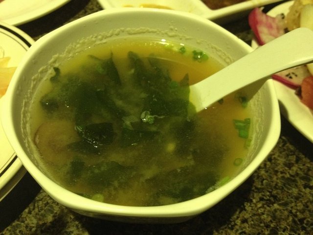 【汤】种类不多,菌汤,味增汤,都是比较廉价的那种。档次不高。味道普通。菌汤还不错。味增汤看起来就和普通紫菜汤无异。