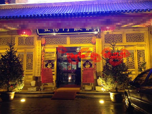 中式的环境,去吃晚饭的时候,还看到中午在这里办婚答谢宴的两家的牌子没来得及撤掉。装修风格是中式风格,整个几层楼全是这样的风格,一层中间搭着戏台,晚上有表演和拍卖。