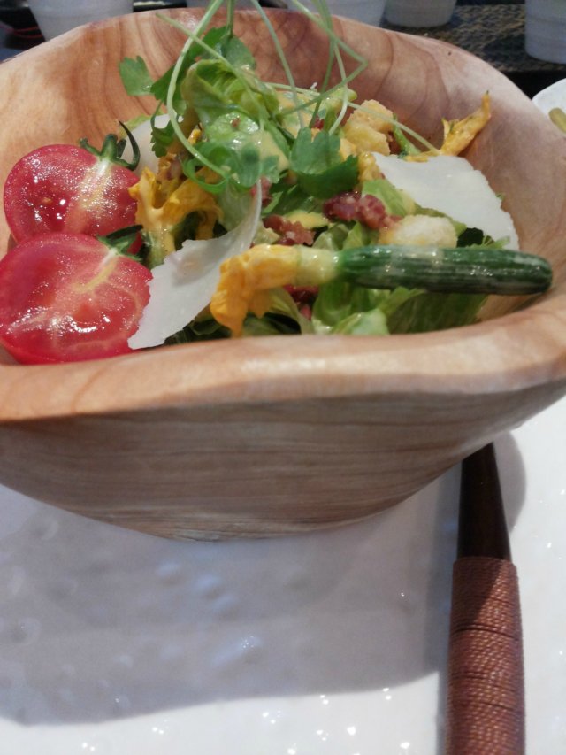 前菜是“致青春”,很别致浪漫的入流菜名。汤是高棉的微笑,实在好听,类似冬阴功的口感,牛腩一样很香嫩。甜品是杨枝甘露,配上西柚,微微凉,爽心。一杯红酒,更开胃。