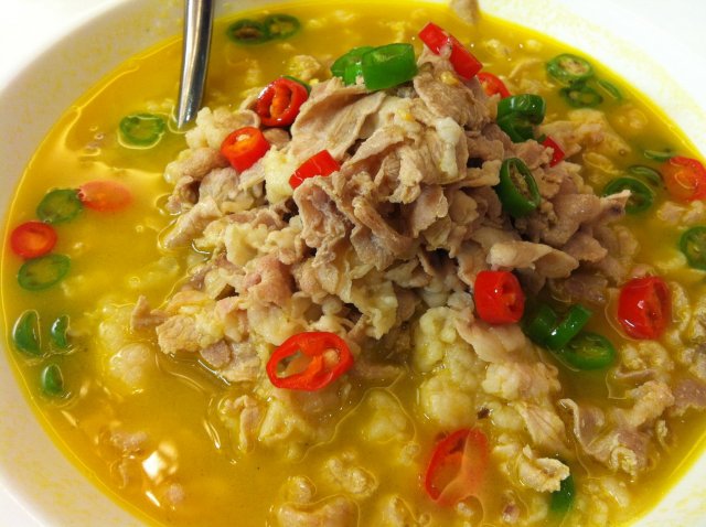 酸汤肥牛,黄澄澄的汤,切得薄薄的肥牛肉,红绿椒的点缀,色彩可谓斑斓,汤的味道酸中带辣,辣中凝结了香,甚是好喝。