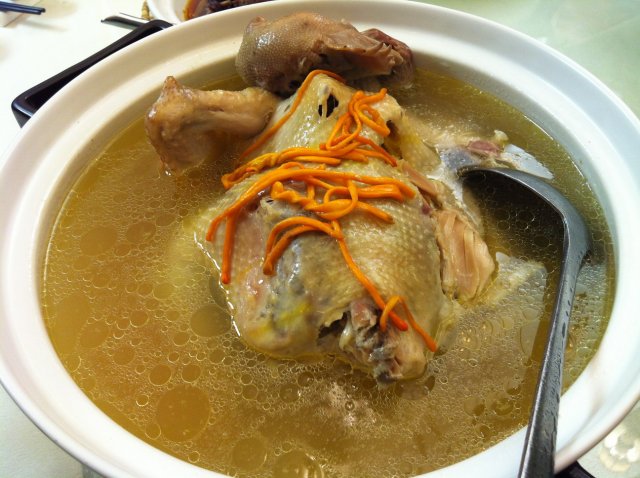 虫草花煲柴鸡,精选的柴鸡,加入虫草花煲汤四小时而成,营养想必是非常之丰富的。
