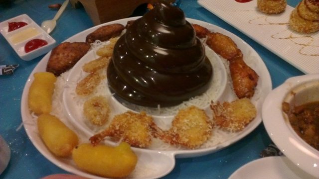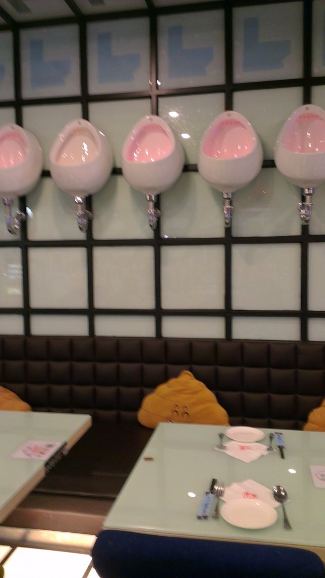 朋友介绍来这里的,口味还不错吧,虽然算不上特别好,但是三杯鸡、萝卜牛腩和卤肉饭都是不错的,就是菜量都不太大。不过,这些都不太重要,因为来这里图的就是一个新鲜感,就是喜欢这样的便所的感觉,哈哈哈哈啊很有特点啊!!马桶的椅子,有便便的桌子,各种便便的装饰,很可爱,很有特点。而且,巧克力便便冰淇淋给了我们几个很好的发挥空间,一通的拍照啊,搞怪啊!!所以,吃并不太重要了,关键是我们当这里是一个可以吃饭的游乐场,哈哈哈啊