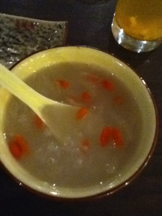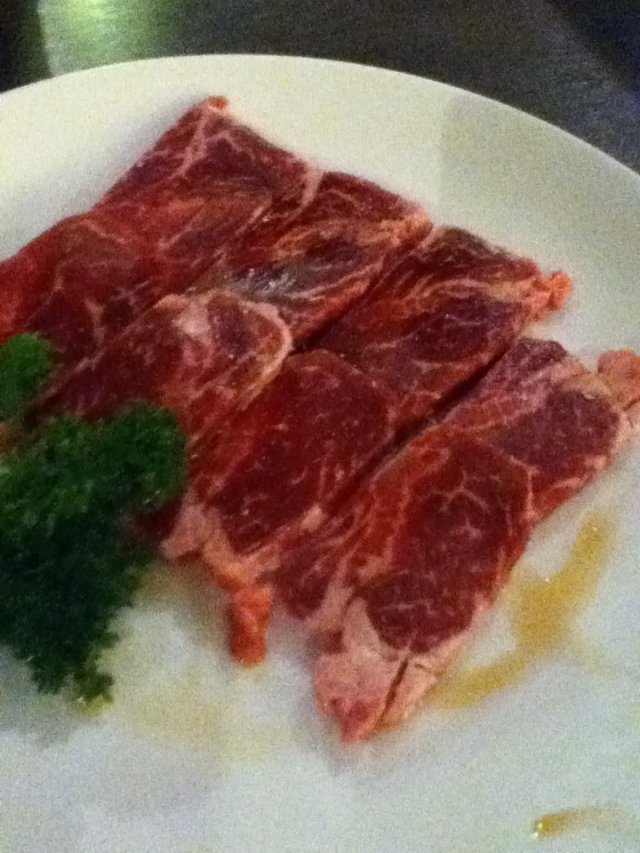 刚进去的时候因为没人上菜很快,点第二轮的时候,速度一下子慢了很多,而且人多了后,服务员也很难叫的到,这点有点不好。原来看到点评上别人说是不限时的,但是进去之前就被服务员告诫过说他们现在限时2个小时,心里有点小不爽,不过2个小时差不多够吃了。桌上有三个小盘子的前菜都还不错,银耳羹也蛮浓的,在我等第二轮上菜的时候干掉了,如果在他们家点菜,绝对要提前个15分钟点,不然吃完了干坐着等很不爽啊。烤肉类吃了牛舌,蛮好吃的,很厚。牛裙肉,这个非常好次,很嫩,于是第二轮又点了一份,竟然漏上了。特色肥牛,一般,肥牛太厚,不是很稀饭。特色牛小排,一般。烤生蚝,不是很稀饭。扇贝,虽然里面真正的扇贝就一小块,但是这个整体味道还是不错滴,点了两次。金针菇不错,很浓的黄油味。日式盐烤虾,一般般,太清淡了,要是多点点盐应该会好次很多。刺身类的,北极贝很好吃,点了两份。甜虾也不错,点了两份。八爪鱼刺身,还行。黑毛雪花牛刺身,本来想试试看的,后来发现生吃牛肉还是吞不下去,结果表面稍微烤了一下,还是不错滴。海螺,一般般。三文鱼腩,这个果然如传说中一样,好次呀,可惜是限量的,一人只给一片,结果导致这个吃完后,三文鱼刺身我只吃了一片就么吃了,差距实在太大了。鳗鱼手卷,就一片鳗鱼。虾籽手卷,虾籽少的勒,比寿司上的都少。土瓶蒸,还是蛮鲜的,不过跟我记忆中的味道还是差一点点,我记得以前吃里面还有鸡肉什么的。焦糖布丁吃了两个,非常好次。冰激凌端上来的时候都化了一半了,悲剧啊。饮料喝的蜜柚汁,太甜。杨梅汁不错,酸酸的,开胃。他们家的果汁都很浓的这点很好。他们家没有wifi。
