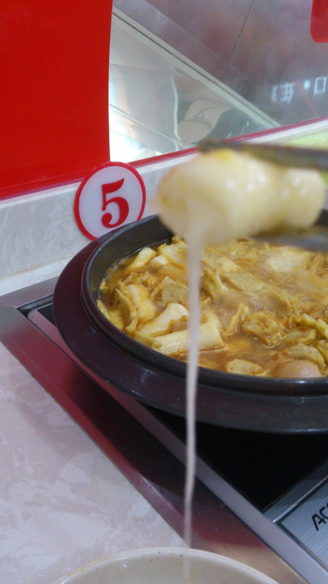 上来的时候跟图片是一样的赞,姐姐我满心欢喜,烧久了发现跟汤年糕没有差别好嘛!上面撒芝士照道理应该在汤里显现出来的,很拉丝的赶脚啊,为毛完全木有~唯一让我欣慰的是,芝士年糕还是很赞的,年糕里面的芝士咬一口就能拉出丝来,而且表层还特别糯,超爱的好嘛!