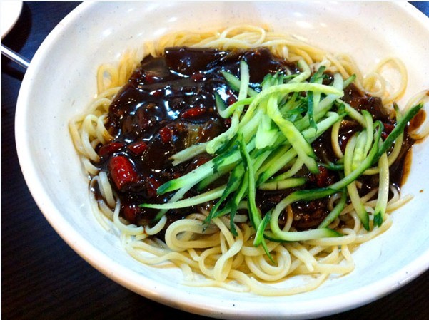 第一次吃韩式炸酱面,感觉和平时吃的老北京炸酱面差不多,只是韩式炸酱面的面更爽滑更劲道一些,韩式炸酱面的酱也比老北京的炸酱更爽口一些,不那么厚重,却不失浓重的酱香味,吃完口不干,很好吃。