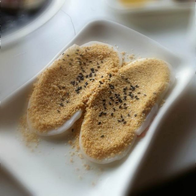 撒满黄豆酥碎屑的年糕,烤制之后,富于这个糯米的口感,粉糯可口,加了黑白芝麻,使得香味更浓郁~~