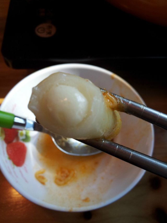 汤的味道稍微有一点点辣,主要还是甜味占上风,和自己想象中完全不一样,以为会是咸咸的超级辣的汤底呢。
