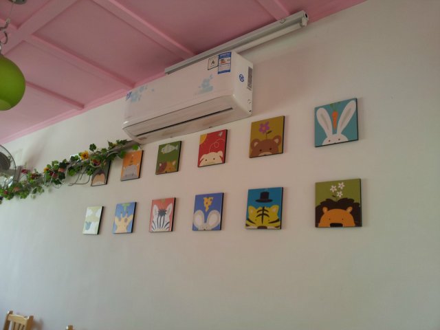 一楼相当于厨房,二楼是就餐的地方,上楼,墙上的卡通画很可爱。
