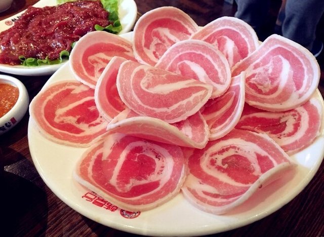 我们两个人点的是套餐,送了一份五花肉,超级好吃,一点都不会腻,我们没有禁住诱惑又要了一份五花肉。