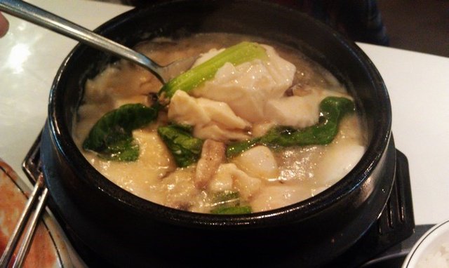嫩豆腐汤:价格和牛肉石锅拌饭一样,18元,里面除了嫩豆腐,还有土豆,不少蛤蜊
