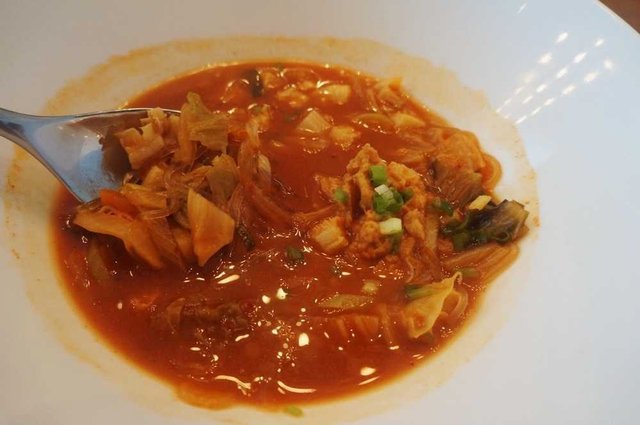 第二道则是开胃又下饭的牛肚泡菜汤,酸酸辣辣的汤汁,劲道的牛肚,配合喷香的米饭;